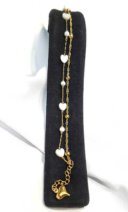دستبند دولاین قلب سنگی مرواریدی بازنجیر خلخال
