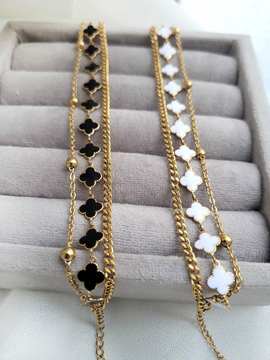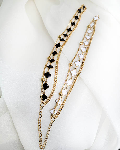 لاین دوم زنجیر ونکلیف پایه طلایی رنگ گل سفید و مشکی طول 16 سانت