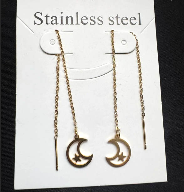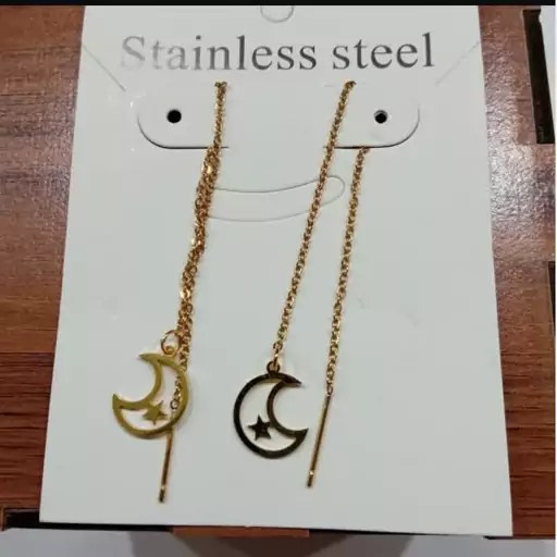 گوشواره بخیه ای استیل ماه تک ستاره