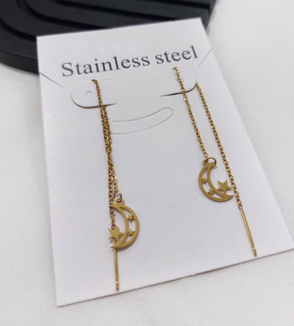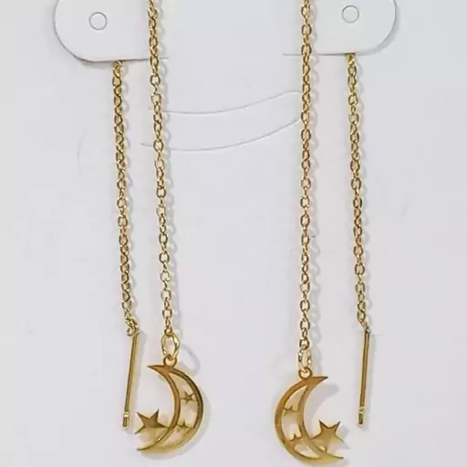 گوشواره بخیه ای استیل ماه سه ستاره