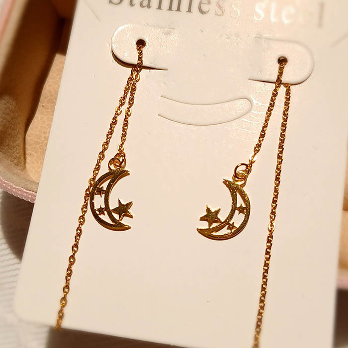 گوشواره بخیه ای استیل ماه طلایی