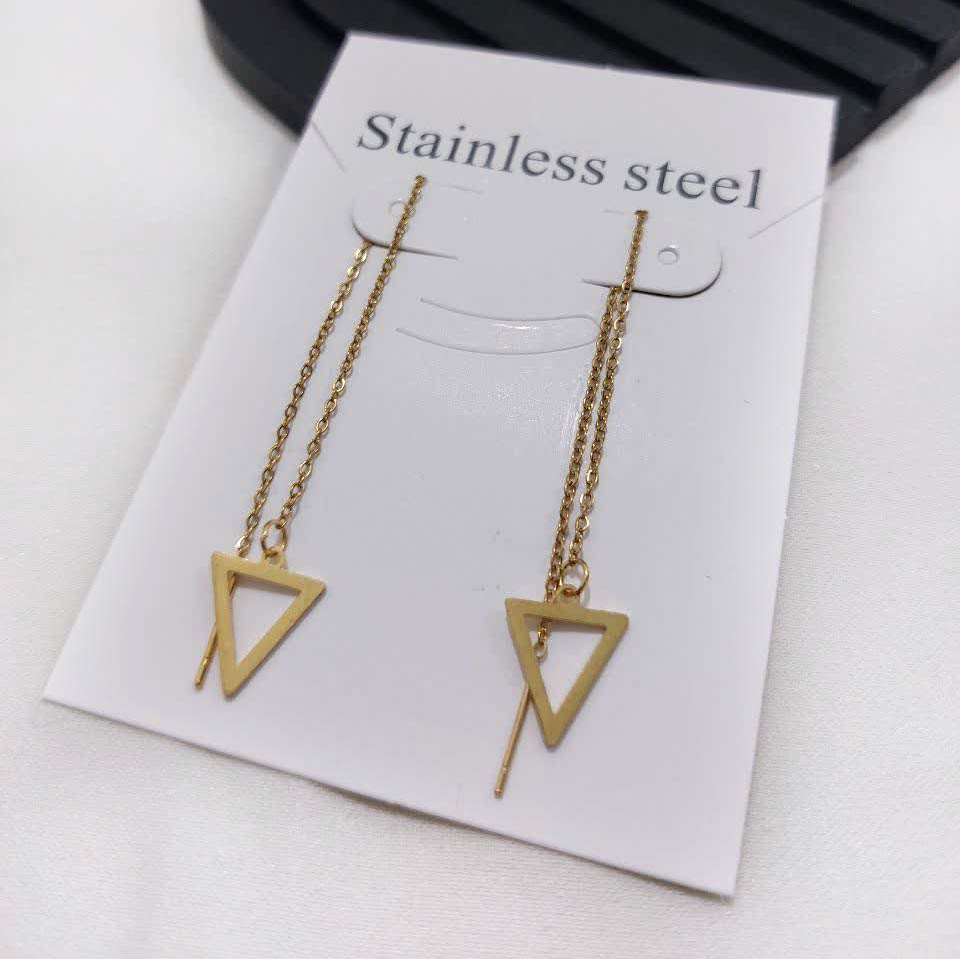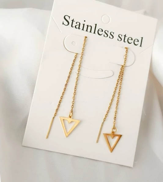 گوشواره بخیه ای استیل مثلثی طلایی