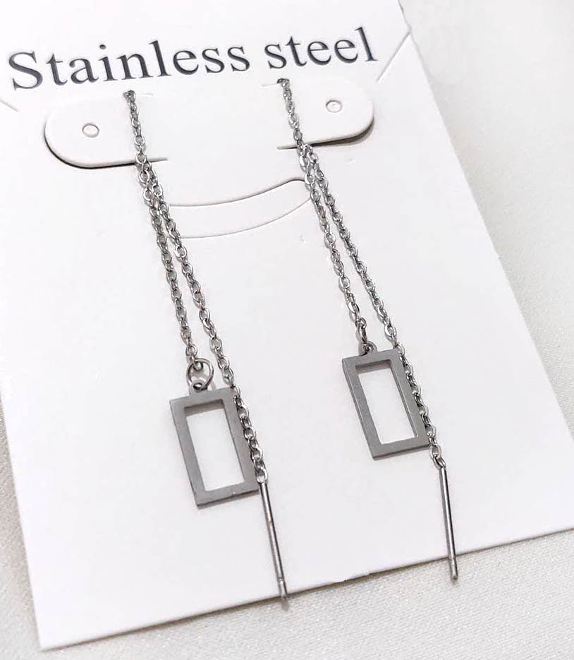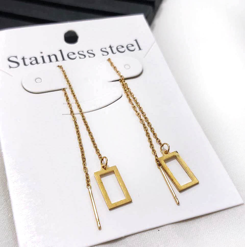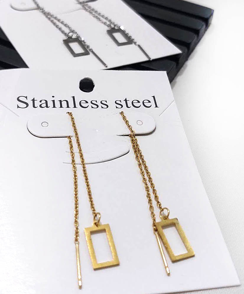 گوشواره بخیه ای استیل مستطیل طلایی ونقره ای